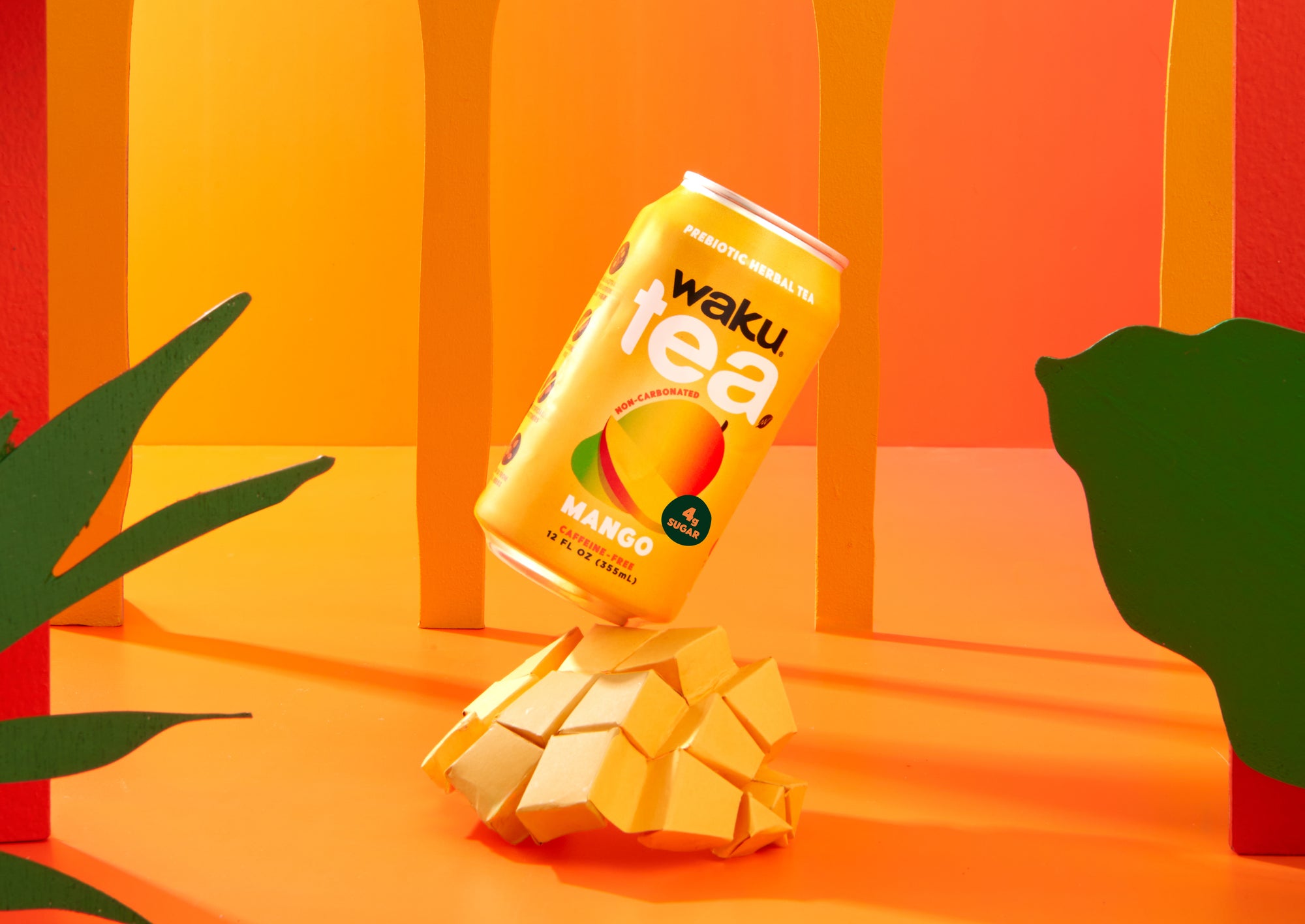 Ingredients: Brewed herbal tea blend (water, lemon balm, chamomile, lemongrass, lemon verbena, white basil, mint), mango juice concentrate, chicory root inulin, mango concentrate, citric acid, ascorbic acid (vitamin C), organic stevia leaf extract, monk fruit extract.